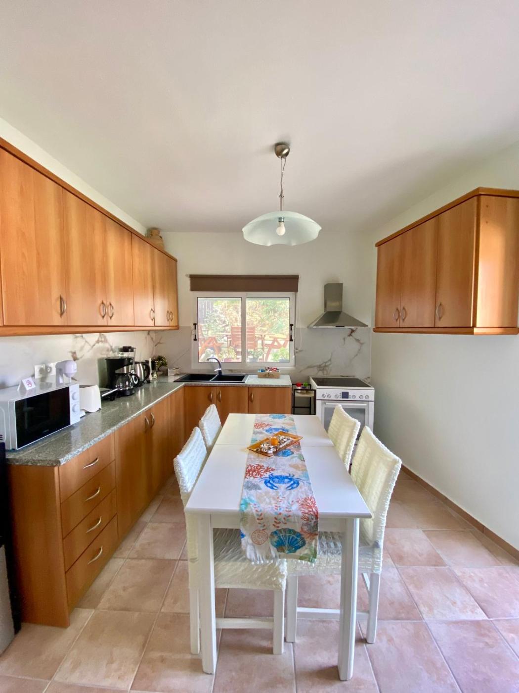 Κατοικία 2 Υπνοδωματίων. Boasting a private entrance, this air-conditioned holiday home comes with 1 living room, 2 separate bedrooms and 1 bathroom with a shower and a hairdryer. Guests can make meals in the kitchen that features a refrigerator, kitchenware, an oven and a microwave. Featuring a terrace with garden views, this holiday home also features a washing machine and a flat-screen TV. The unit has 5 beds.